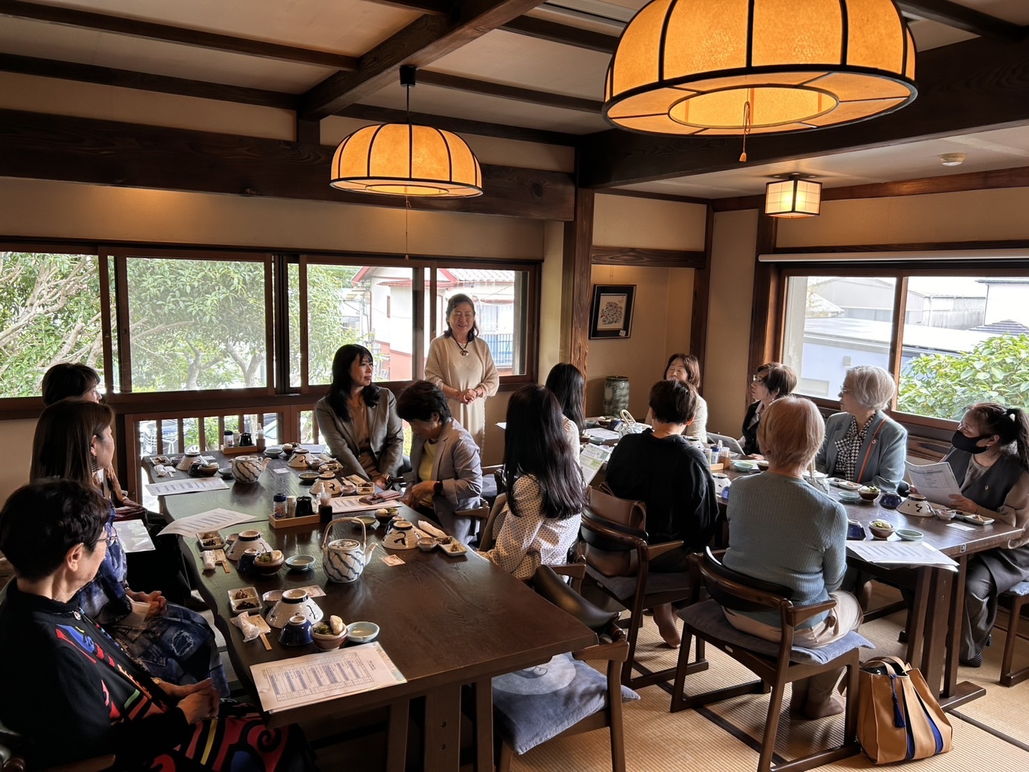 2025.10.16(水)静岡商工会議所女性会様との交流会を開催いたしました。静岡市駿河区の「とろろじる丁子屋」さんにて歓談しながらお食事を堪能しました。それぞれの会員の仕事に深く感心を持ち、有意義な時を過ごすことができました。駿府の工房 匠宿さんでは「駿河竹千筋細工」に挑戦。お買い物やクラフトビールを楽しみ帰路につきました。多くの名物がある静岡に魅せられた1日でございました。長年女性会に所属する会員は「女性会のおかげで全国いろいろなことに皆さんと出かけられることがとても楽しいの」と話しておりました。道中のバスの中でも経済の話などで盛り上がり、明日から豊かな気持ちで仕事を頑張ろう!と思わせてくれる1日でございました。私たちと一緒に活動しませんか。是非お気軽にお問い合わせくださいませ。